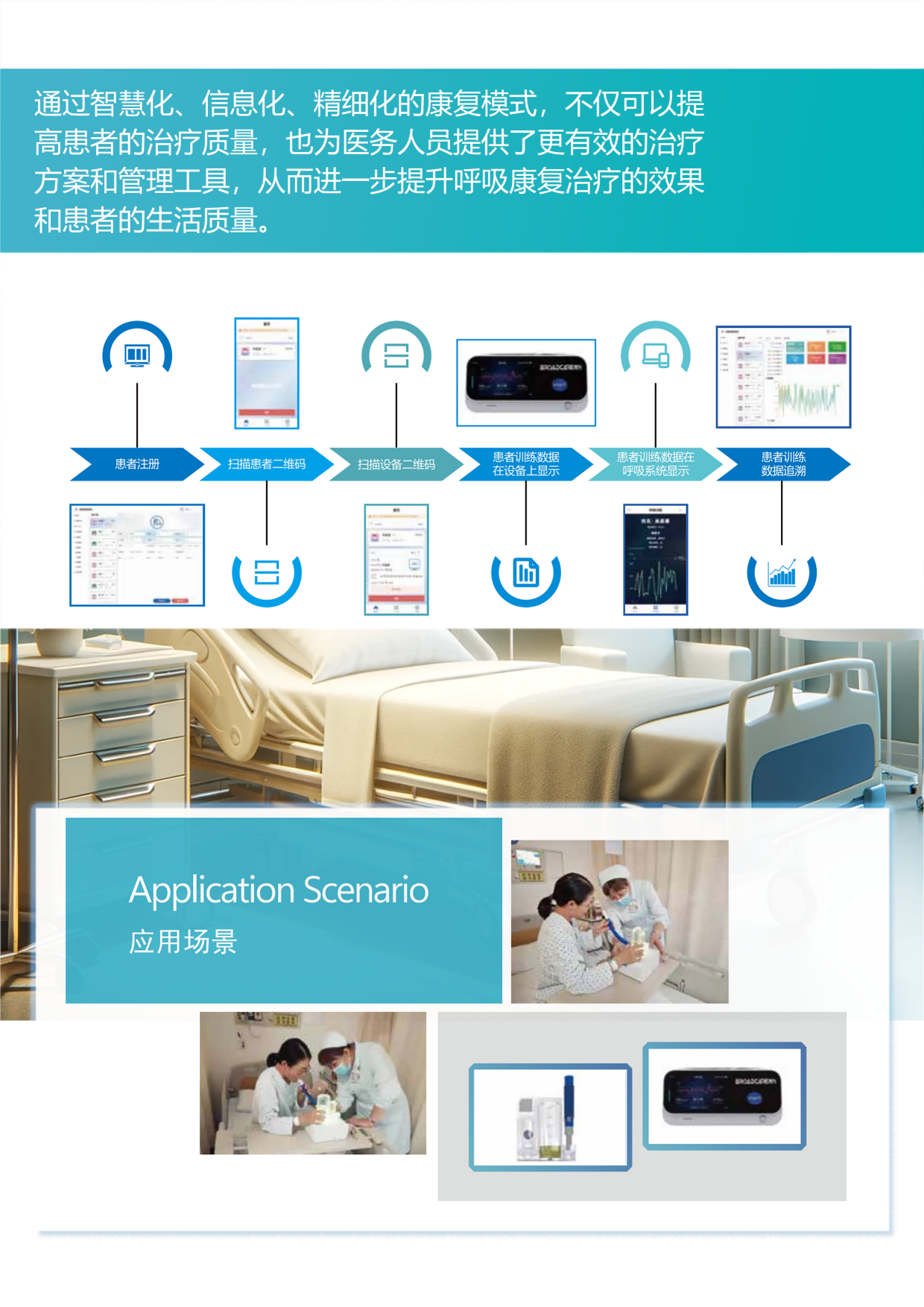 智能呼吸訓(xùn)練系統(tǒng)是一種基于物聯(lián)網(wǎng)和人工智能的創(chuàng)新醫(yī)療平臺(tái),通過(guò)監(jiān)測(cè)和分析患者的呼吸數(shù)據(jù)來(lái)實(shí)現(xiàn)智能化的呼吸康復(fù)訓(xùn)練,為醫(yī)生和護(hù)士提供全面的患者管理和監(jiān)測(cè)工具。該系統(tǒng)能夠自動(dòng)化地收集、整合和分析患者的呼吸參數(shù)數(shù)據(jù),為每位患者制定個(gè)性化的康復(fù)計(jì)劃,并實(shí)時(shí)監(jiān)測(cè)患者的康復(fù)進(jìn)程。系統(tǒng)可以為醫(yī)護(hù)人員提供客觀(guān)的數(shù)據(jù)報(bào)告和分析結(jié)果,幫助他們更精準(zhǔn)地評(píng)估患者的康復(fù)狀況并做出及時(shí)的調(diào)整,針對(duì)性的對(duì)患者進(jìn)行指導(dǎo)和管理,為制定更精準(zhǔn)的治療方案提供更為科學(xué)和有效的決策。